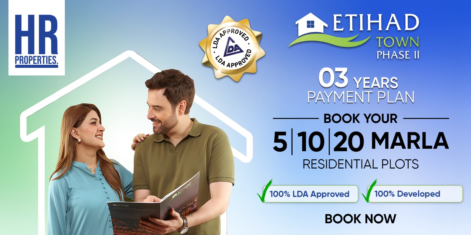 CALL US TO BOOK YOUR PLOT NOW With a 3-year easy installment plan, Etihad Town Phase 3 offers residential plots from 5 to 40 marla. This flexible payment structure allows investors and homeowners to plan their investment comfortably.