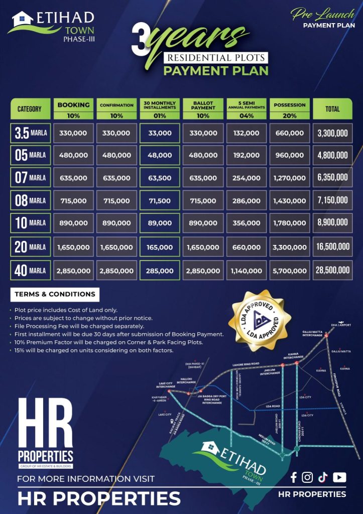 - Etihad Town Phase 3 is officially approved by the Lahore Development Authority (LDA)
